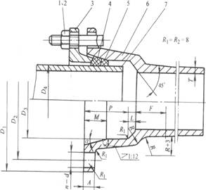 1-螺母 2-螺栓 3-壓蘭 4-膠圈 5-支撐圈 6-管體承口 7-管體插口